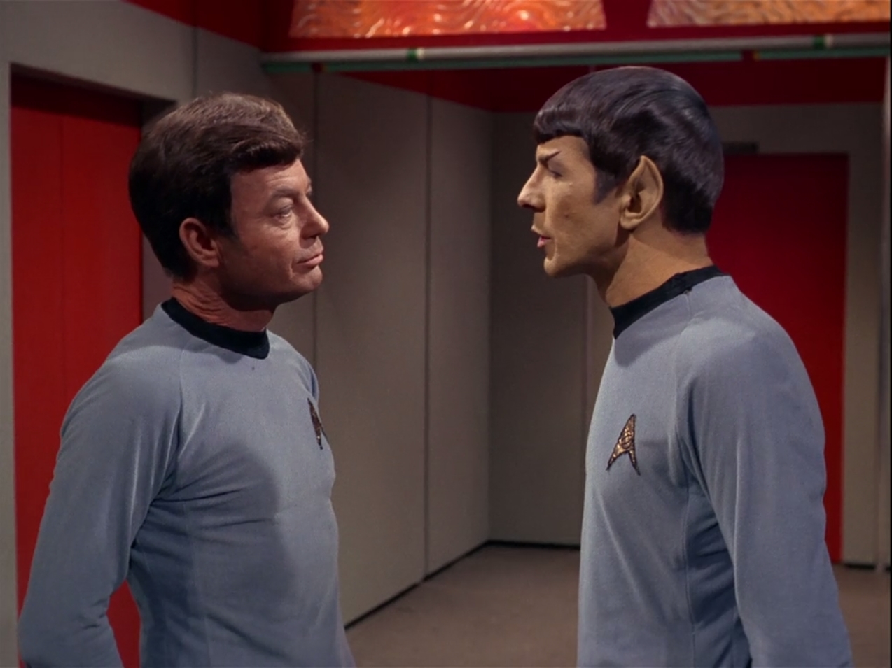 Let’s start off with Spock and the original series. It is said that Vulcans do not have emotions, and if they do have them, they do not embrace them. As you may know, however, Spock is only half Vulcan. I think because of this, his emotions are closer to the surface. He has a difficult time connecting with his crew and making friends, but this does not mean he has no friends. Of his friendships, the most endearing and powerful is his friendship with Kirk. He jokingly points out when Spock is being illogical but knows his friend very well and is not afraid to call Spock out if the Captain notices something he feels is not right for the ship, crew, or, most often, his friend. A lot of people on the autism spectrum use logic as a shield to protect themselves and to allow them to override their emotions. This is not to say Spock doesn’t laugh or cry. We have seen him do both. We have even seen him mourn the death of a friend. His emotions are there, but he keeps his composure, so he never has to feel weak. Through this we see the influence of his father Sarek, teaching him that feeling weak is not a Vulcan thing to do. This is hard for Spock, not only as a Vulcan, but because he is male. Gender norms exist in the 23rd century and are frequently explored in the show. We see him struggle with this, for example in Amok Time, where he goes so far as to isolate himself when he discovers he cannot hide his emotions. We find out later in the show that he is going through something called Pon farr, which is the Vulcan mating season that happens every seven years of their life and is essentially him going into rutting the way deer do. To put it another way, he is going into heat. He has to fight Kirk as part of the ritual and hurts him badly by cutting open his chest. He also brings his other friend, Dr. McCoy. His friendship with Bones, aka McCoy, is what some would say is a toxic friendship.