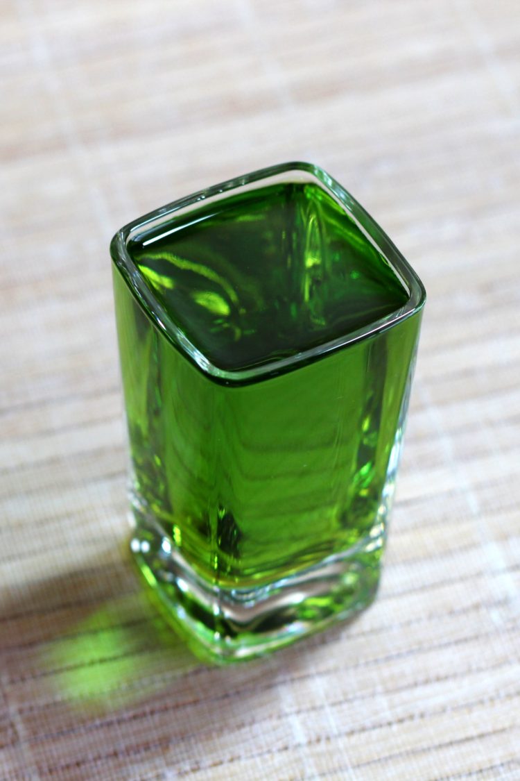 - Mix liquor in a shaker with ice until cold to your hand; strain over the juice and serve with a gummy worm if you wish.